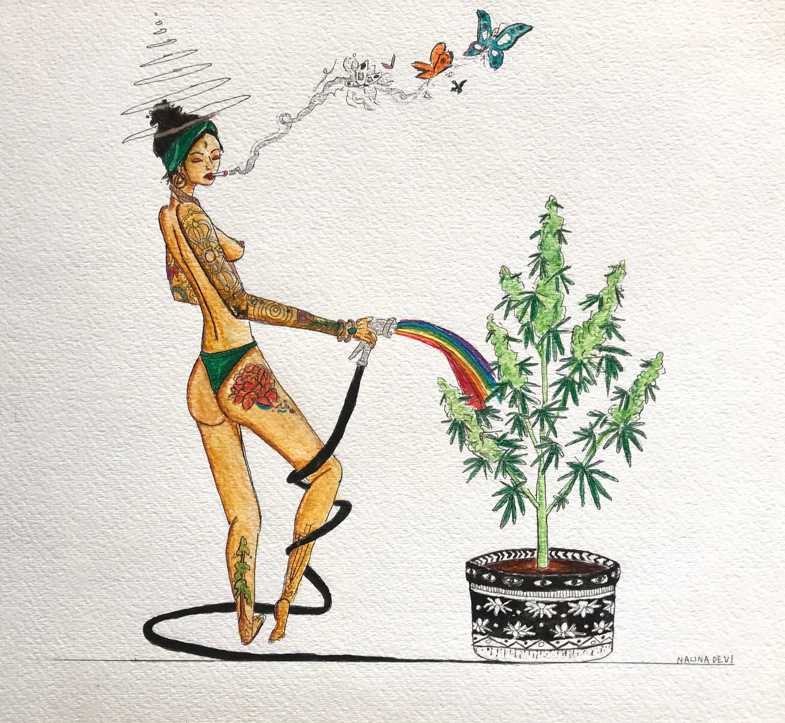 Rainbow Weed Babe Original Watercolor On Cannabis Goddess Etsy Uk
